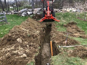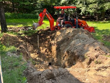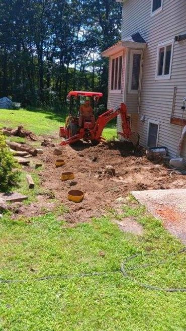 We do Excavation in Southern NH of water, sewer, and drainage lines. Site prep for steps, decks, patios, sheds, above ground pools, and slabs. Excavation for footings and frost walls for additions, garages, and outbuildings. Grading driveways. Grade lawns, spread loam. Planting and excavation of small trees and shrubbery. Why Rent a machine when you can have an experienced operator and the machine for about the same money with no pickups or drop off times. $100.00 per hour, four hour minimum per day